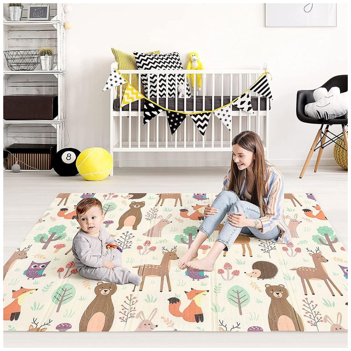 ¡El espacio de juego más seguro y cómodo para tu bebé! Esta Alfombra Gateo Animales del Bosque está diseñada para proporcionar un área amortiguada como protegida ideal para que tu bebé gatee, juegue, para que aprenda a caminar. Su diseño plegable permite guardar, transportándola fácilmente, haciendo de cualquier lugar un parque infantil seguro.