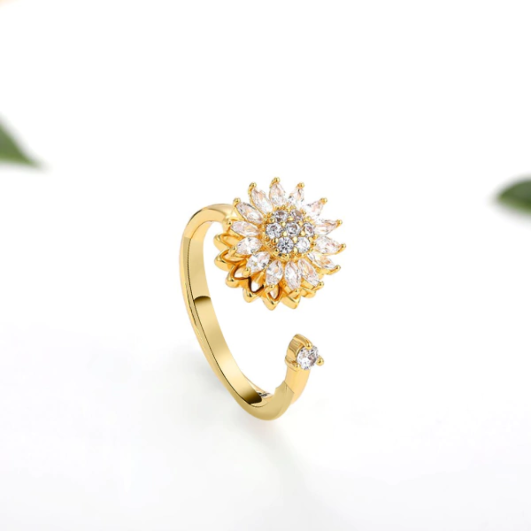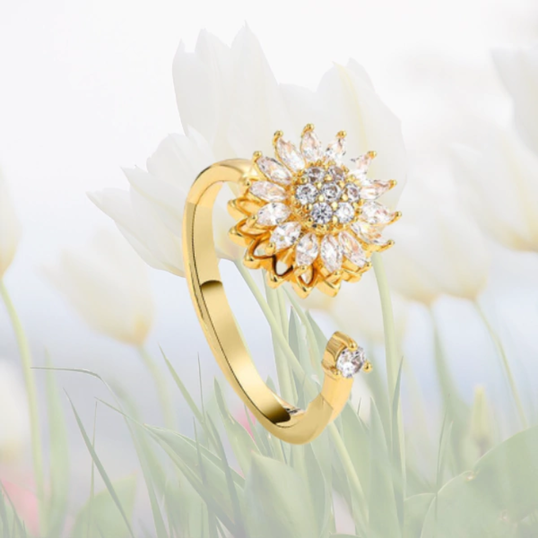 Su girasol central gira suavemente, creando un efecto hipnótico y delicado que lo convierte en una pieza única, elegante y diferente a todo.