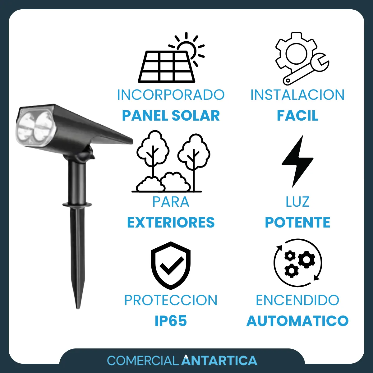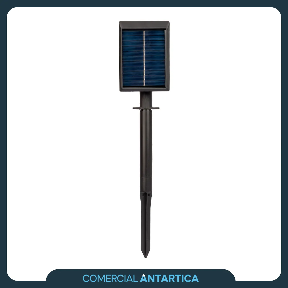 Estaca Solar LED 6W con jabalina para jardín, ideal para iluminar espacios exteriores de manera sostenible y práctica. Funciona con energía solar, ofreciendo luz neutra y encendido automático al anochecer. Su diseño en color negro y materiales resistentes la convierten en una opción duradera para cualquier ambiente exterior.