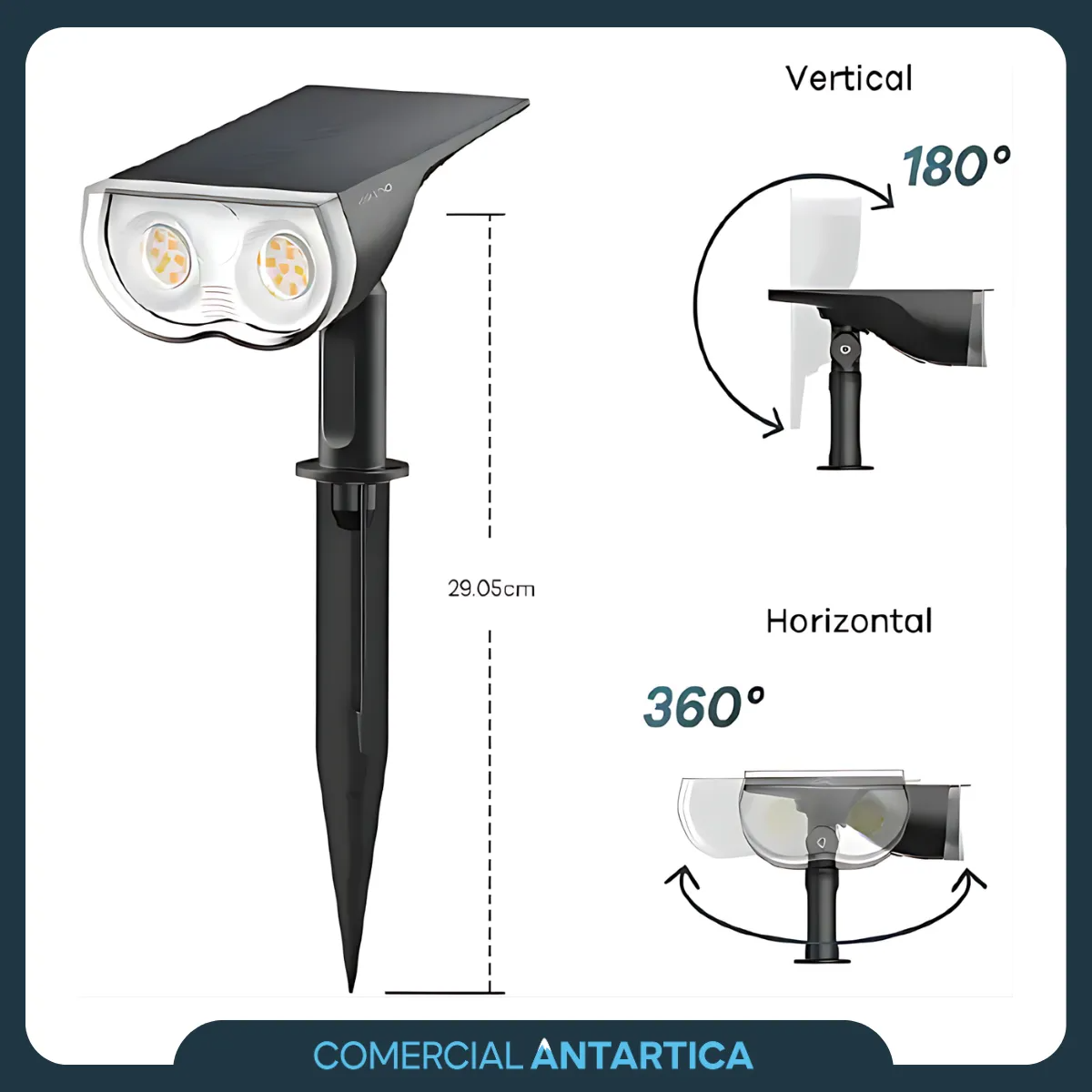 Fabricada para soportar la intemperie, cuenta con protección IP65, batería recargable integrada y una instalación muy sencilla gracias a su jabalina para clavar directamente en el suelo. Perfecta para jardines, senderos, patios y áreas verdes decorativas.