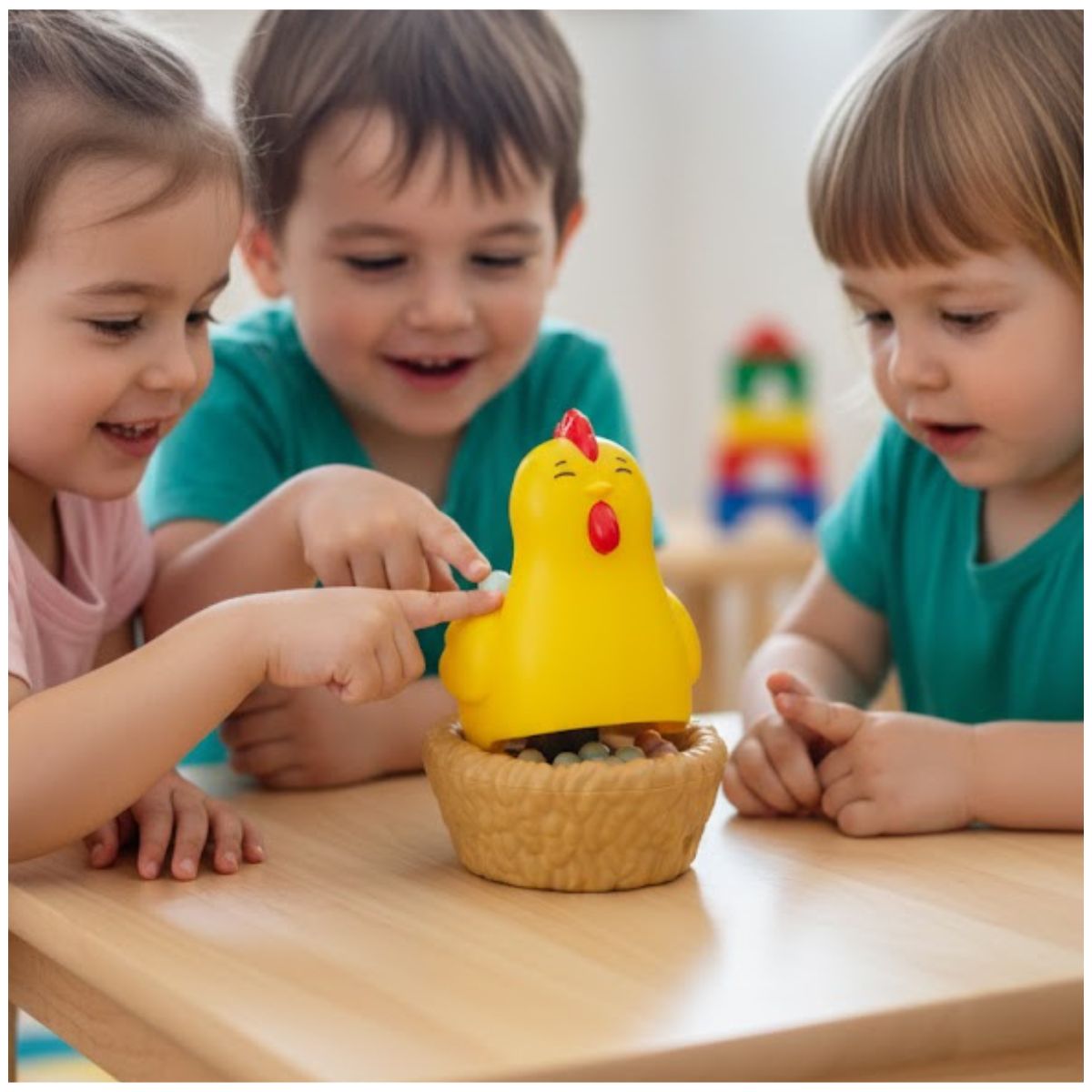 - Diseño de Pollito Clásico: Cuenta con una forma de gallina o pollo detallada y colorida que lo hace visualmente atractivo para los niños.